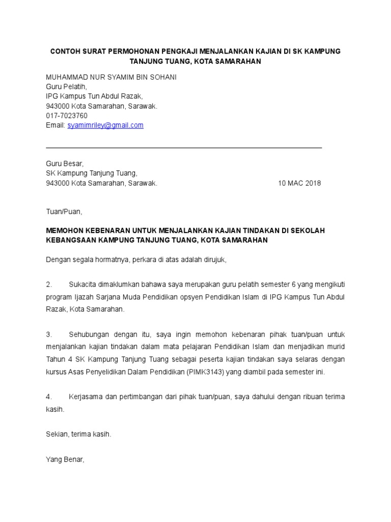 Contoh Surat Memohon Kebenaran Membuat Kajian Kumpulan Contoh Terbaru